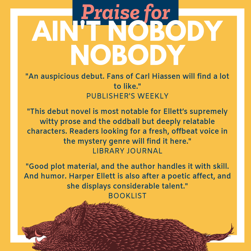 I am stating this right off – Ain’t Nobody Nobody was the best damn book I’ve read in 2019! Author Heather Harper Ellett completely blew me away with this story set in east Texas surrounded by feral hogs no less.