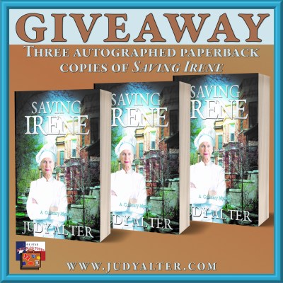 After an award-winning career writing historical fiction about women of the nineteenth-century American West, Judy Alter turned her attention to contemporary cozy mysteries: the Kelly O’Connell Mysteries and Blue Plate Café Mysteries. Her avocation is cooking, and she is the author of Cooking My Way Through Life with Kids and Books, Gourmet on a Hot Plate, and Texas is Chili Country.
