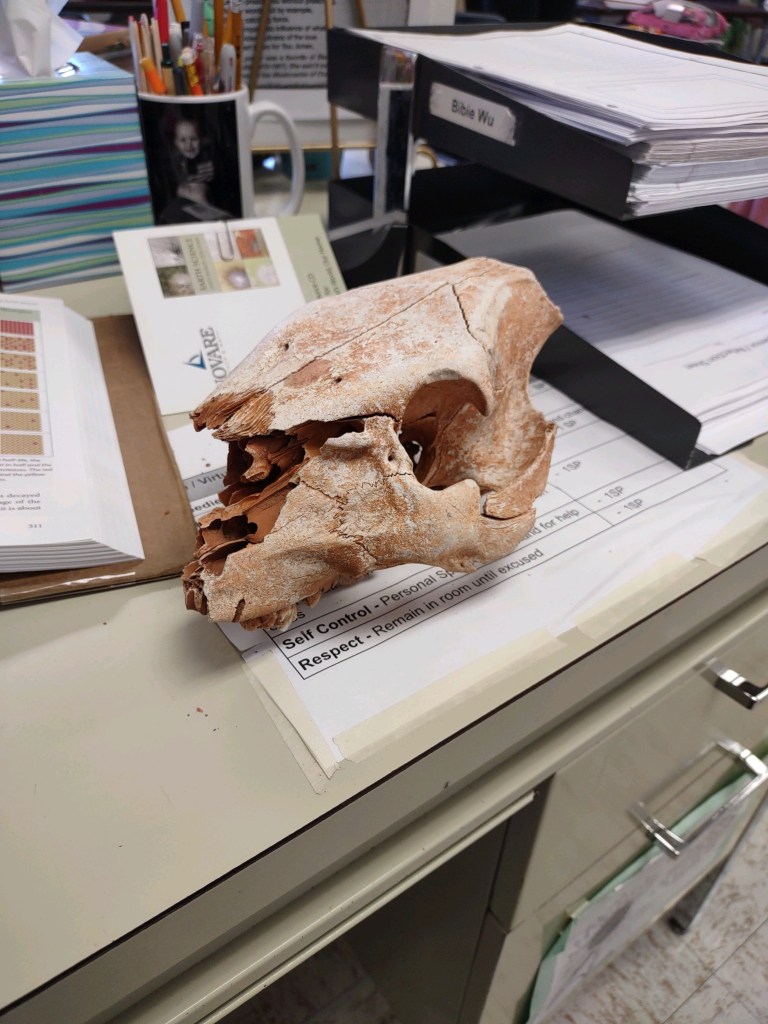 Yes, yes – I know the student should have left the skull in place in the state park. It is not my job to lecture on that aspect because his interest peaked in something he discovered by kicking some rocks. Learning should always be encouraged not censored.