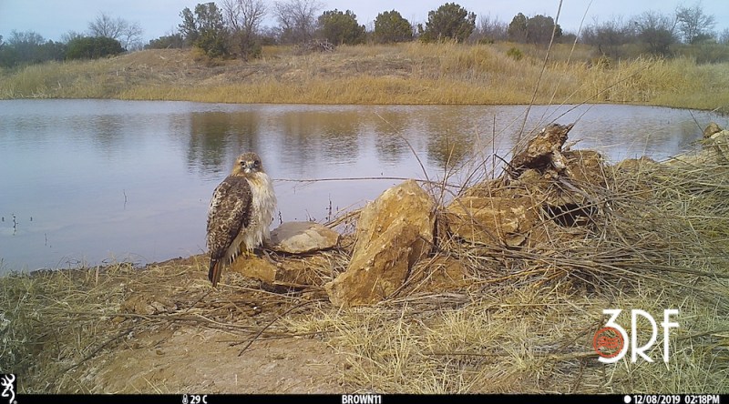 The camera traps I set have often captured red-tailed hawks at our Beaver Pond since I have been monitoring the wildlife at Comanche Springs Astronomy Campus beginning in 2015. Most of the photo captures show these hawks just sitting at the pond edge as if they are looking over their domain. There was one set…